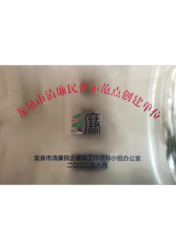 Longquan city clean and honest private enterprise demonstration site creation unit